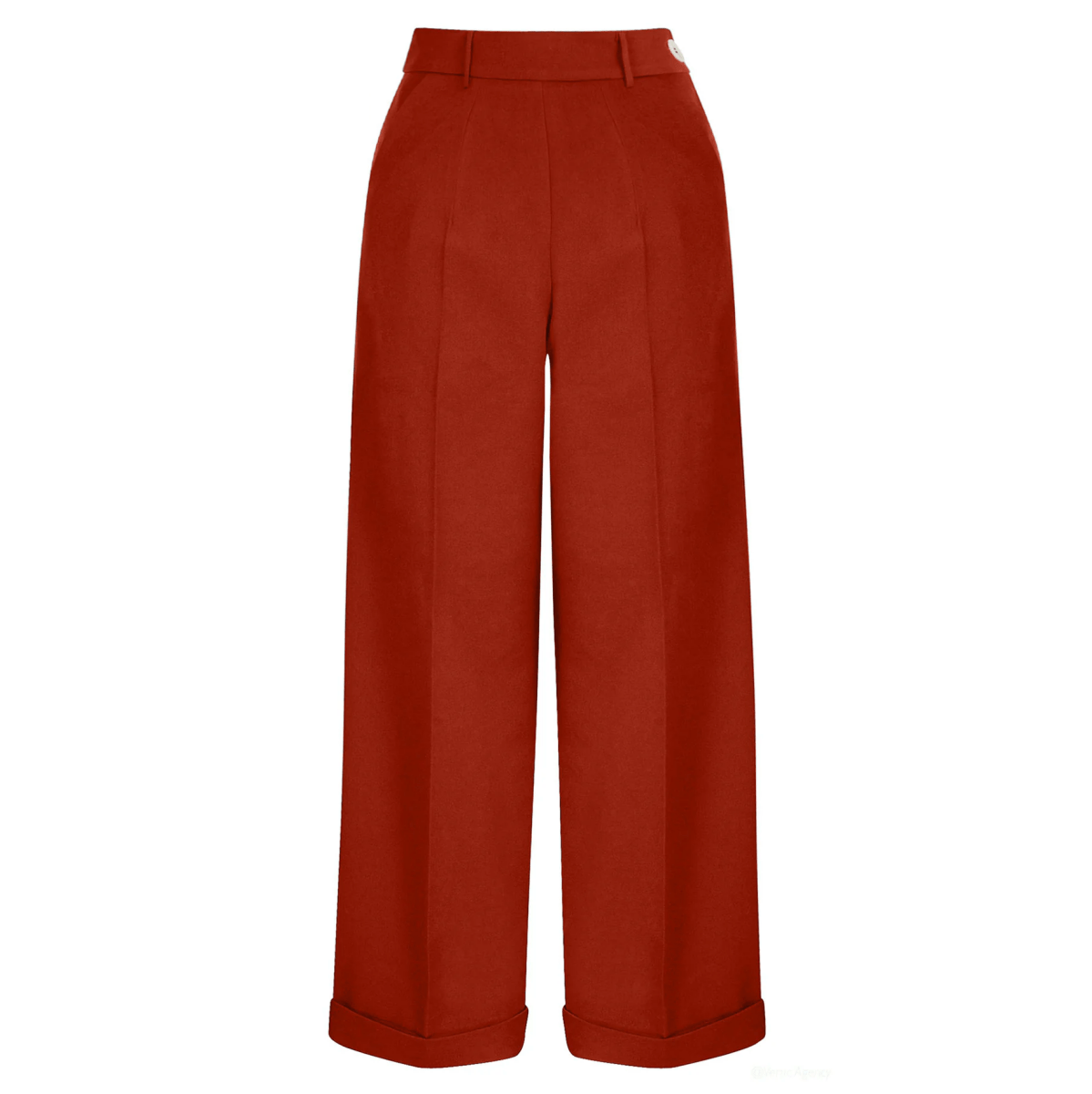 1930s and 40s Classic High Waist Wide Leg Trousers in Rost | Weekend Doll | Damenhose