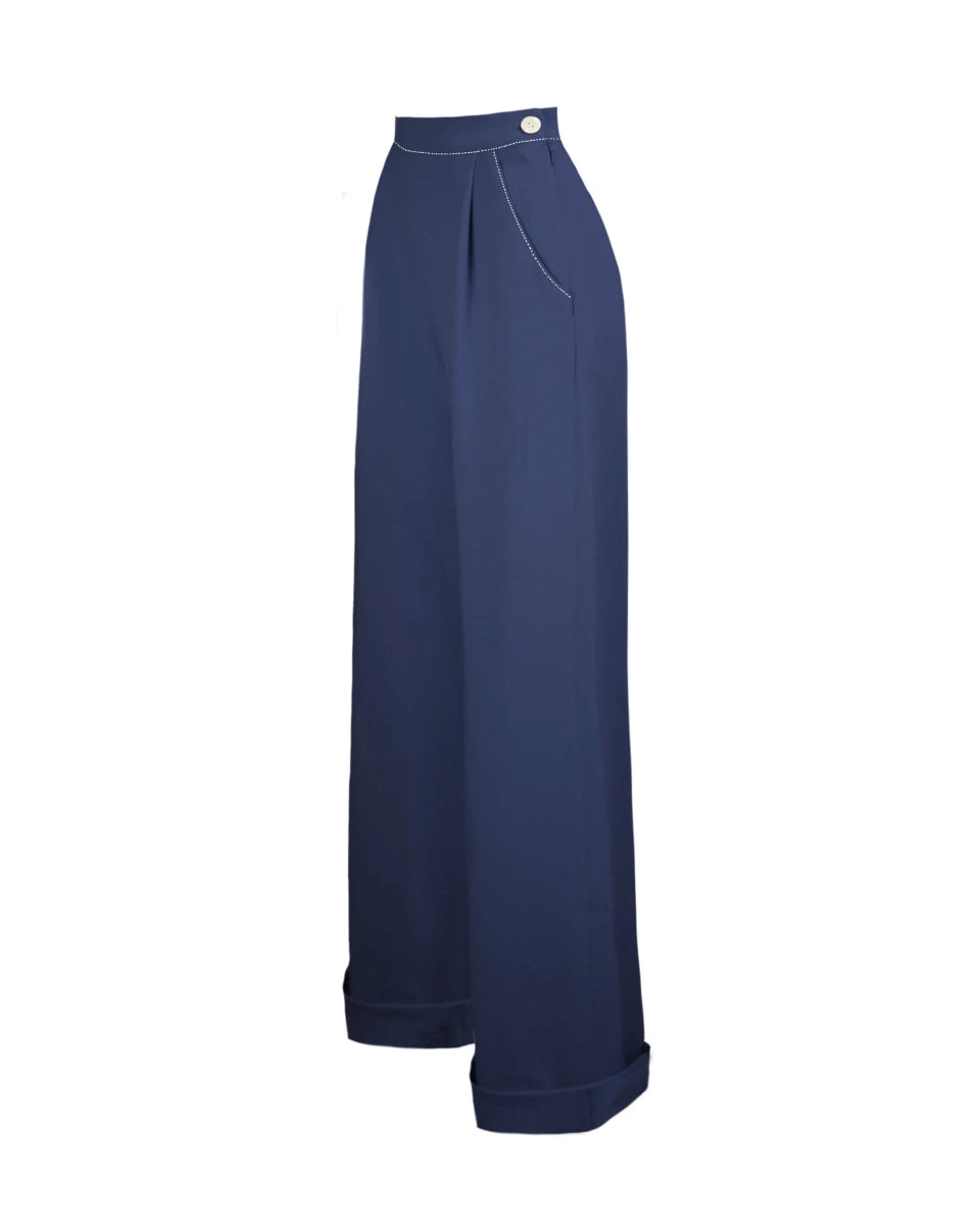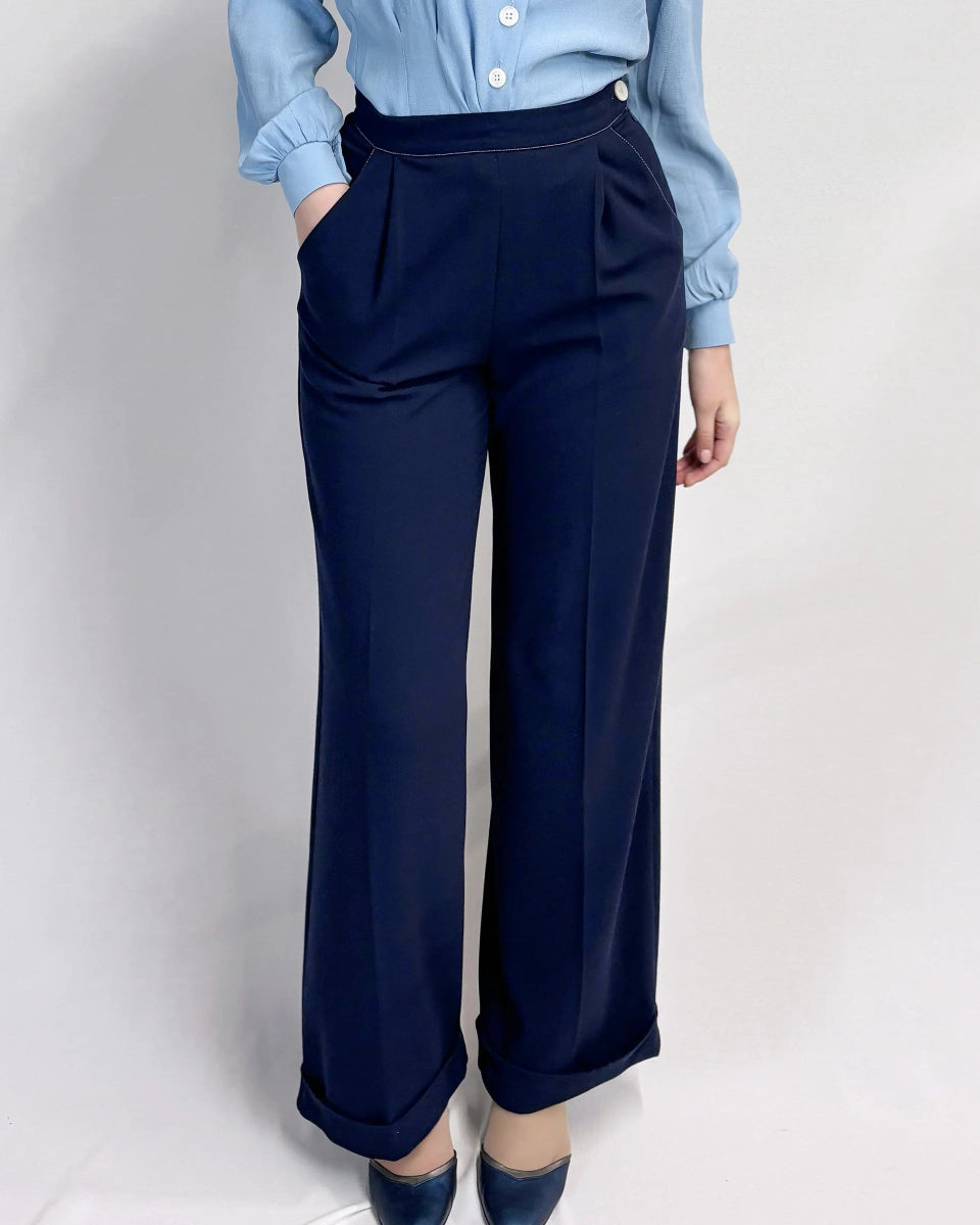 1940s Hepburn Pleated Trousers in Navy | The House of Foxy