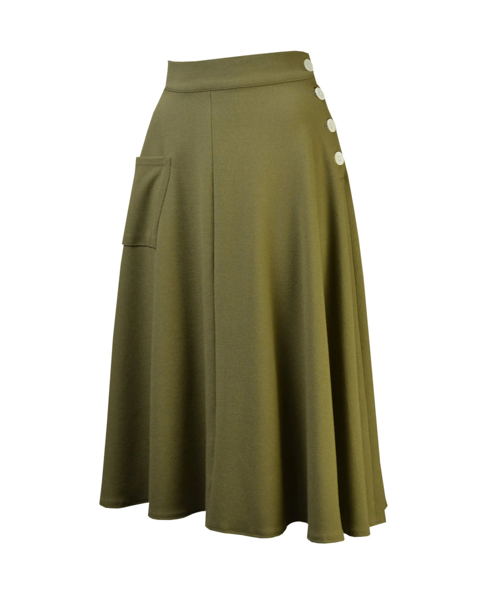 1940s Whirlaway Skirt in Khaki | The House of Foxy