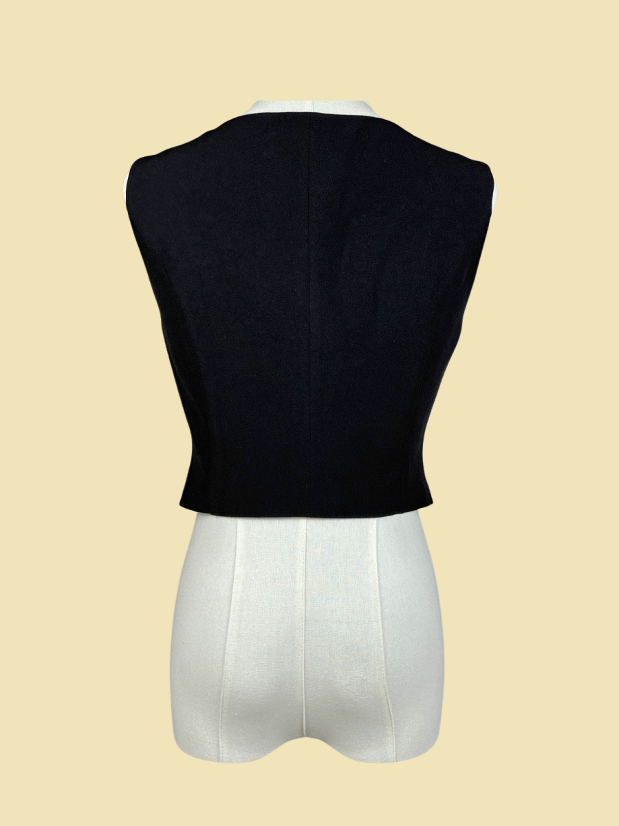Die Weste Dona von Femkit in klassischem Schwarz überzeugt mit elegantem V-Ausschnitt und figurnaher Passform. Mit ihren bezogenen Knöpfen und dem taillierten Schnitt lässt sie sich vielseitig kombinieren, ob über einer Bluse, einem Shirt oder als stilvolles Einzelstück. Durch die hochwertige Verarbeitung und das zeitlose Design ist sie vielseitig kombinierbar.