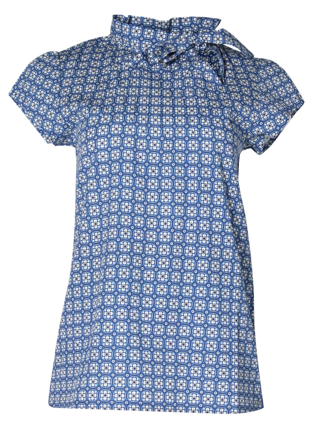 Die Bluse Adelvice in Blau mit Retro-Muster und Schleife von Circus wird fair in Irland produziert. Gefertigt aus 100 % Baumwolle überzeugt sie durch angenehmen Tragekomfort und hochwertige Verarbeitung.