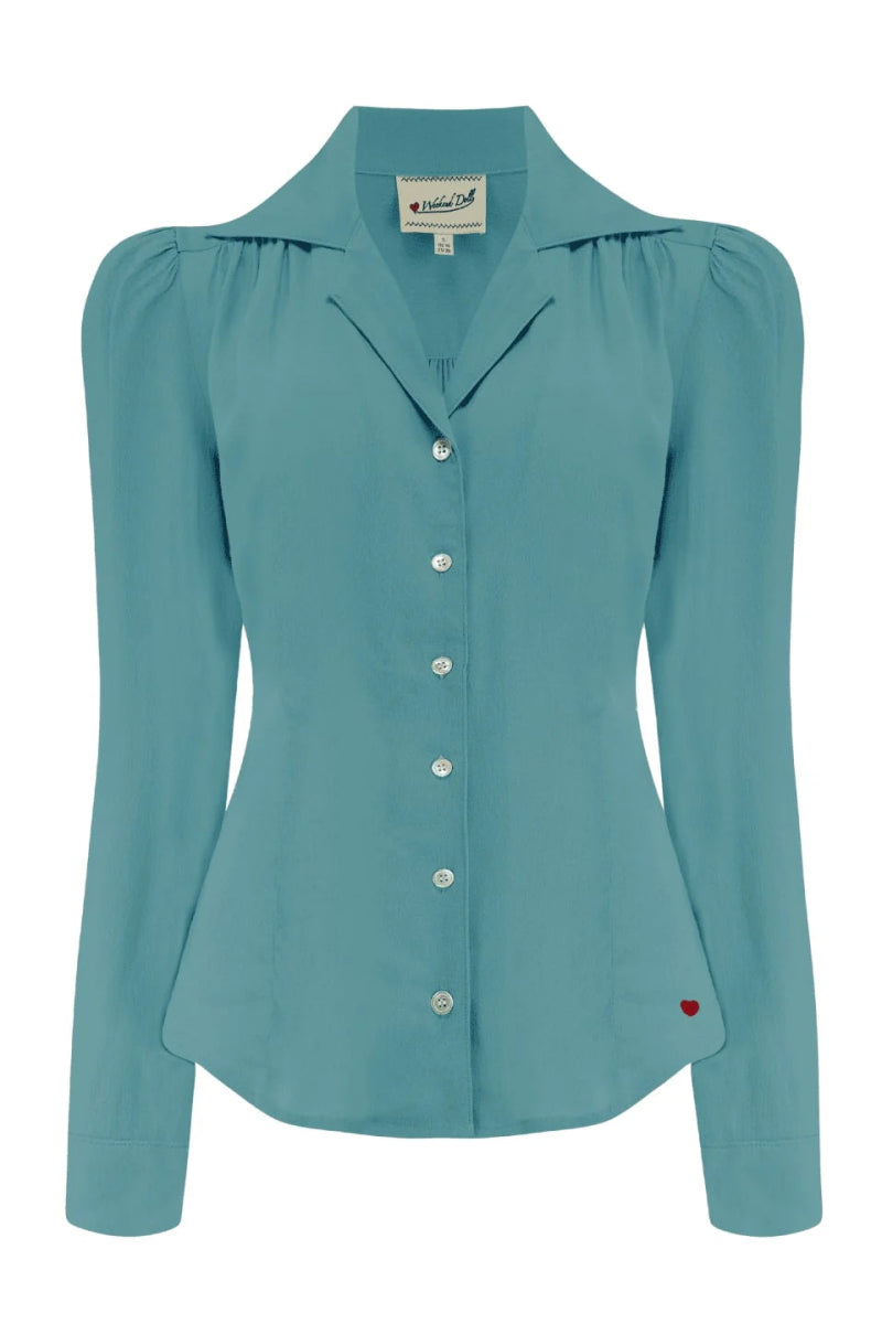 Bluse Gene langärmlig in Teal | Weekend Doll | Damenbluse