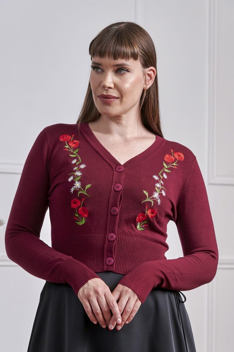 Burgundy Nara Roses and Daisies Cardigan | Banned Retro