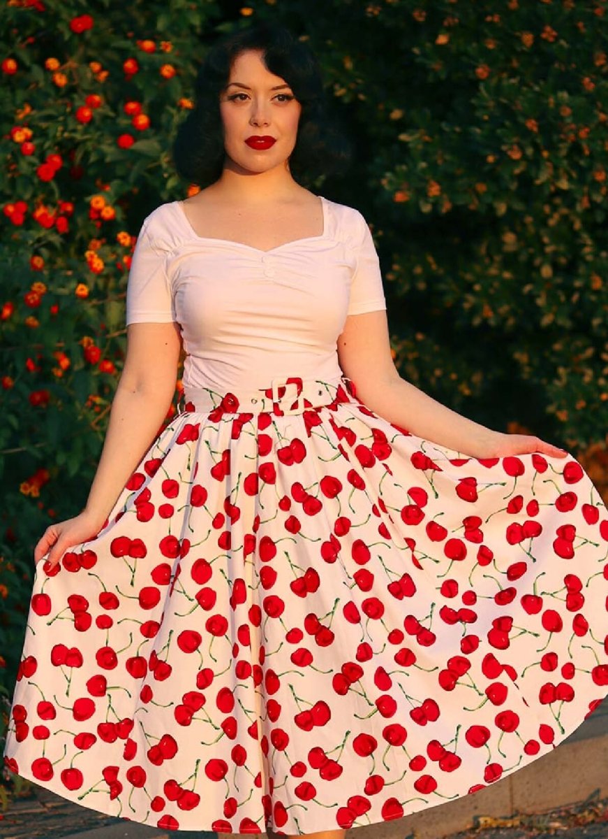 Das Darcie Top von Hearts & Roses ist ein klassisches Basic im 50er-Jahre-Stil. Mit seinem figurbetonten Schnitt, dem Sweetheart-Ausschnitt und den kurzen Ärmeln betont es die feminine Silhouette. Die herzförmigen Zierknöpfe verleihen dem Design einen verspielten Vintage-Charme. Gefertigt aus angenehm weichem, elastischem Baumwolljersey bietet das Top hohen Tragekomfort und eine perfekte Passform. Ideal kombinierbar zu Swing- oder Pencilröcken.