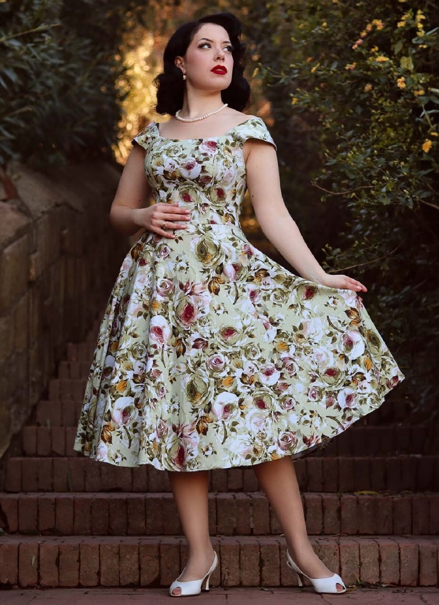 Emilia Floral Swing Dress in Grün | Hearts & Roses | Damenkleid