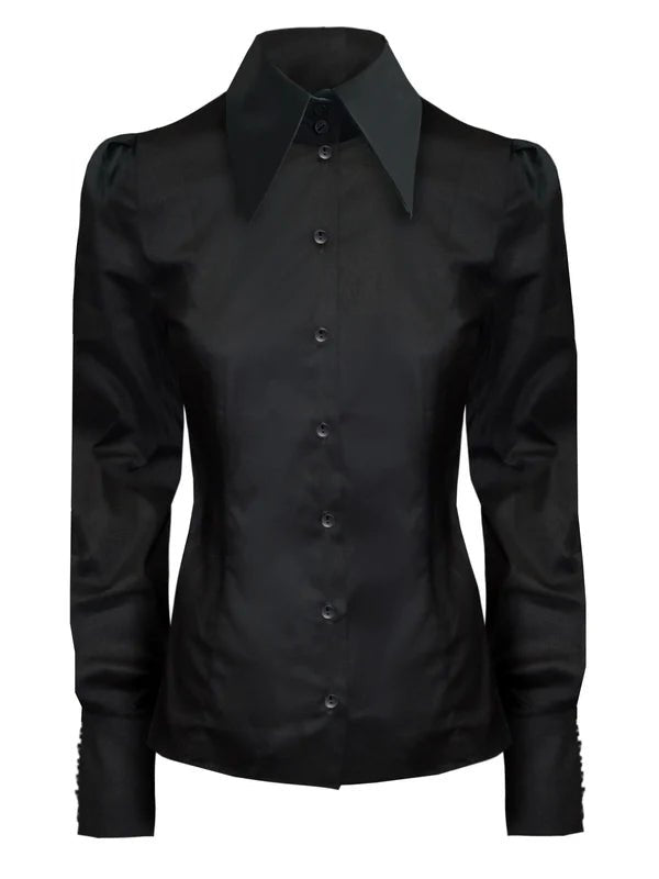Die feminine Bluse Agnes von Femkit überzeugt durch ihre taillierte Schnittführung und den markanten Kragen mit hohem Steg. Die Puffärmel mit breiten Manschetten setzen charmante Akzente und verleihen der Bluse einen eleganten Vintage-Look. Durch ihre klare Form und die hochwertige Verarbeitung ist sie vielseitig kombinierbar, ideal für Büro, Alltag oder besondere Anlässe.