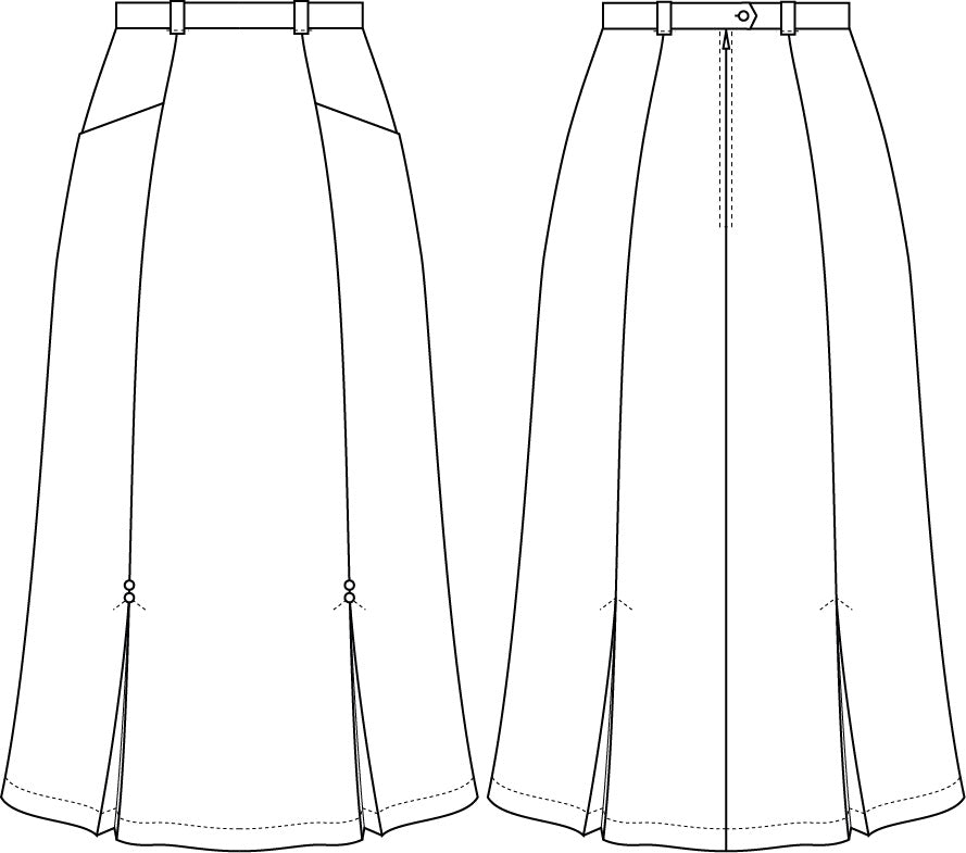 – Midilanger Rock im Stil der 1930er mit sportlichen Kickfalten