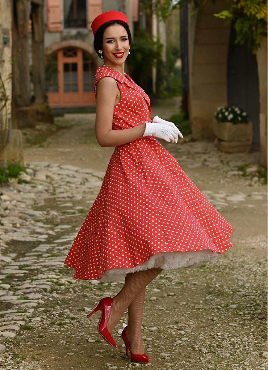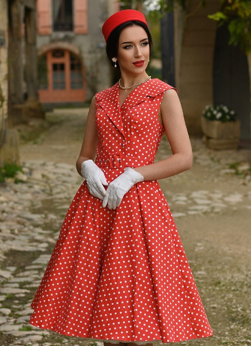 Hannah Polka Dot Swing Dress in Rot | Hearts & Roses | Damenkleid