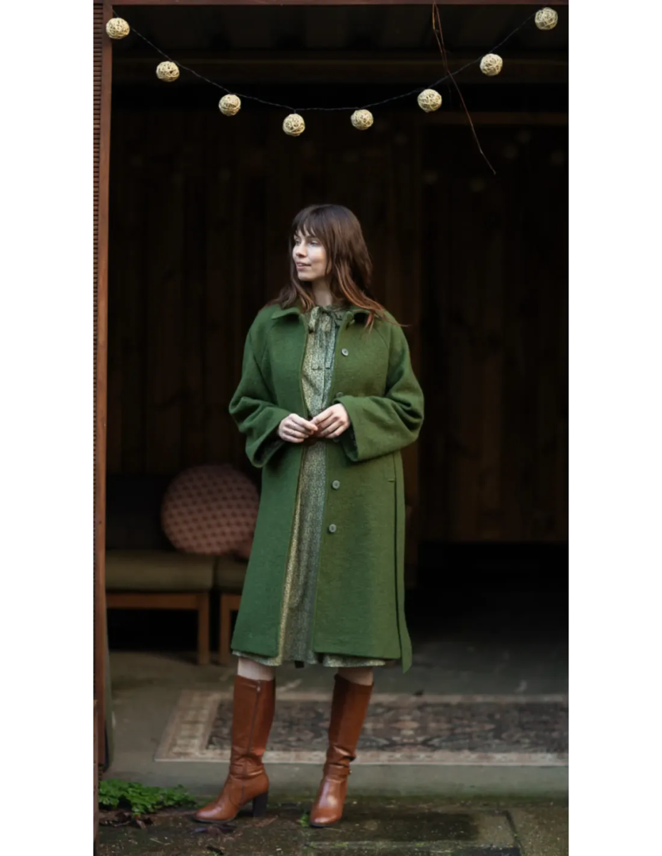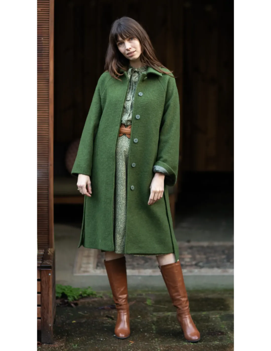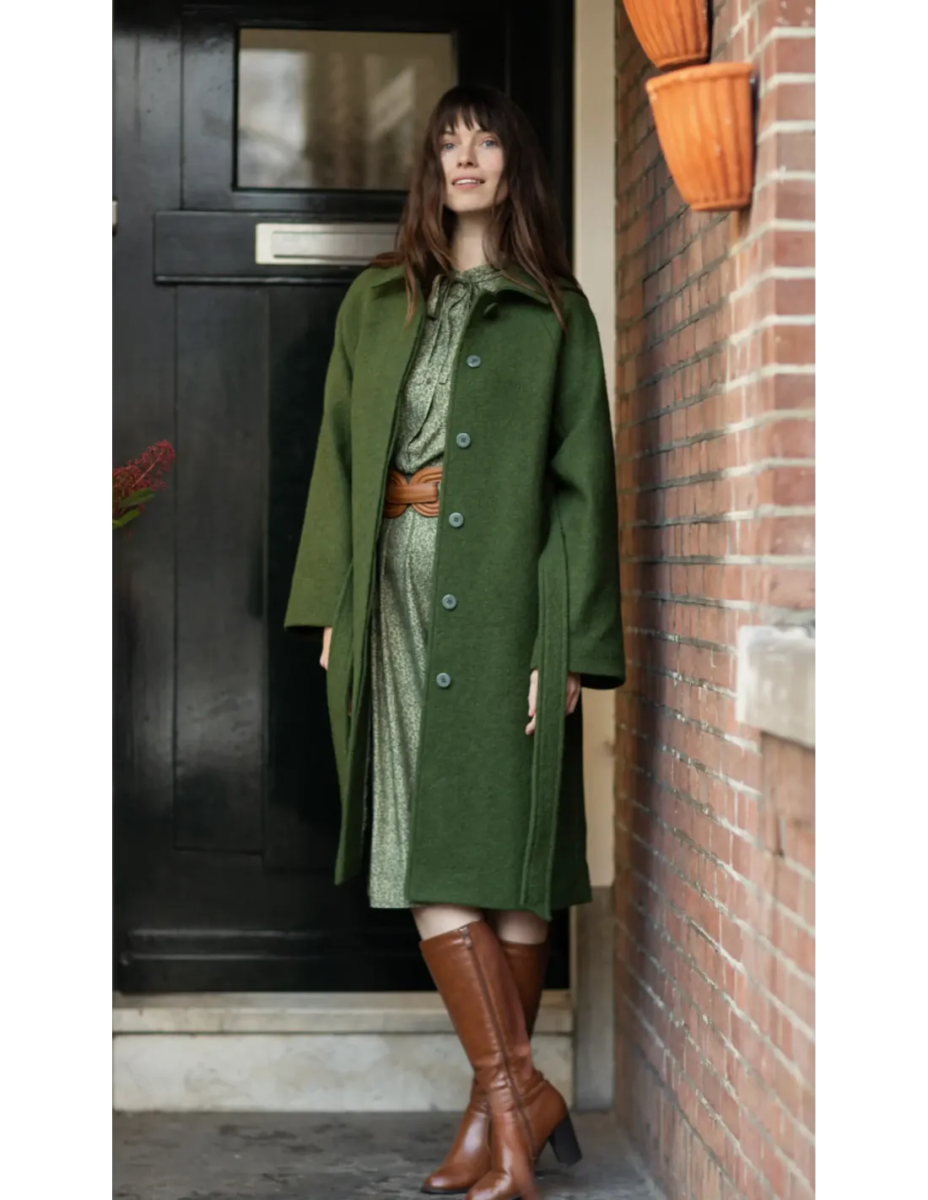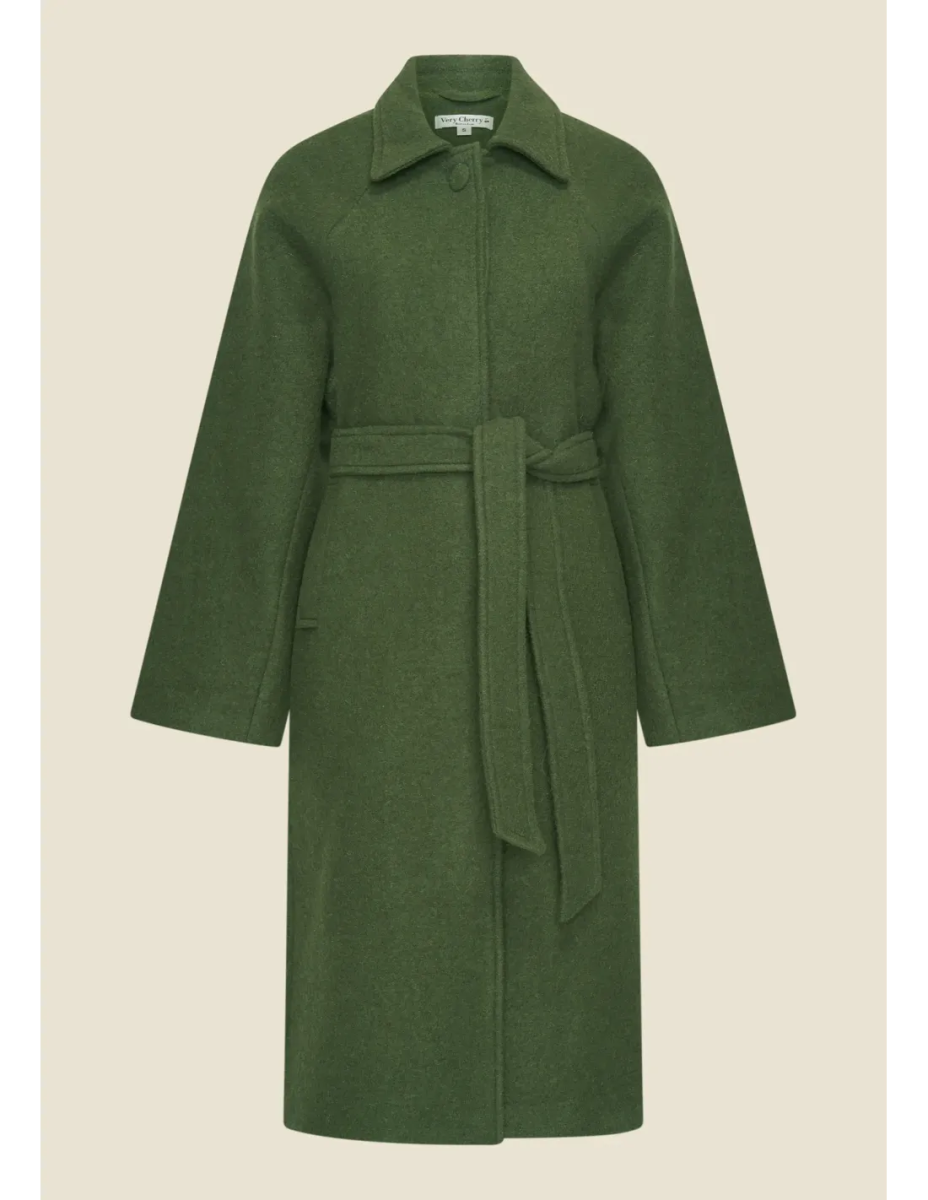 Ein klassischer Mantel mit modernem Charme. Der Isia Coat von Very Cherry überzeugt mit zeitlosem Design, gerader relaxed Passform und weiten Ärmeln im Kimono-Stil. Große Reverskragen, verdeckte Knopfleiste und Bindegürtel verleihen ihm eine elegante Silhouette. Hergestellt aus reiner Wolle, vollständig gefüttert und fair produziert in Europa.