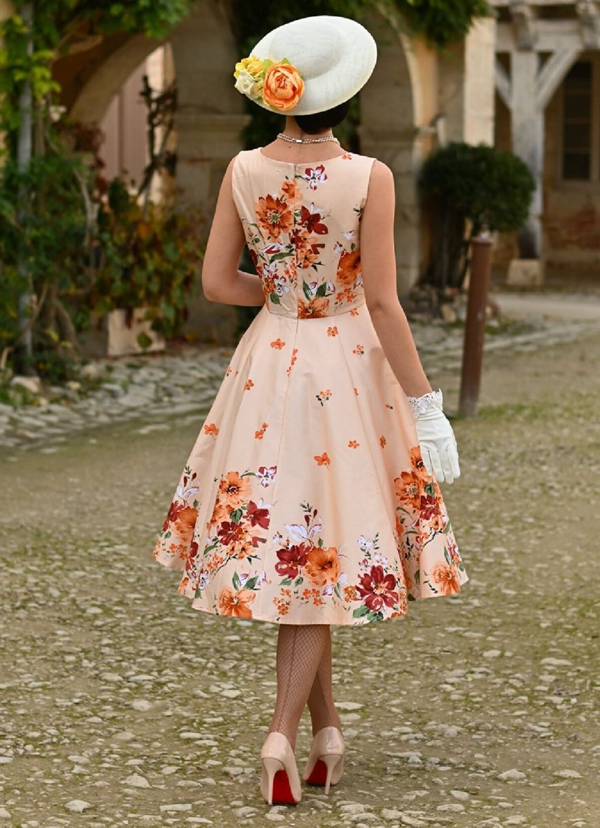 Jade Floral Swing Dress in Beige | Hearts & Roses | Damenkleid