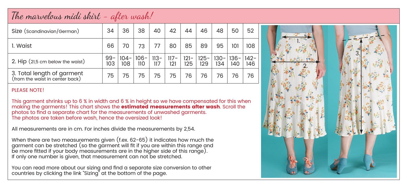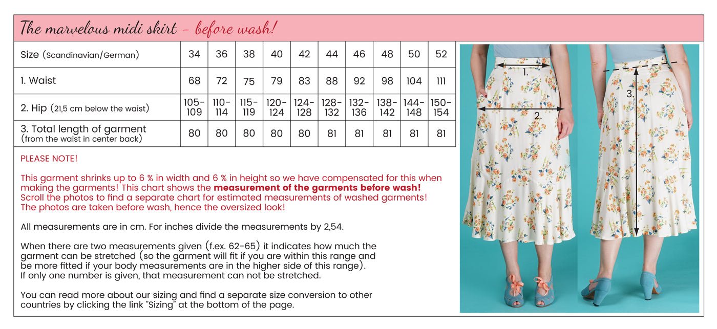 Dank festem Bund mit Reißverschluss und Knopf hinten sowie vier Gürtelschlaufen lässt sich der Rock feminin betonen und vielseitig kombinieren. Bitte beachte: Das Material läuft beim Waschen ein – die Maße wurden in der Produktion bereits angepasst! Der Rock fällt beim ersten Anprobieren größer aus, erreicht aber nach dem Waschen die ideale Passform.