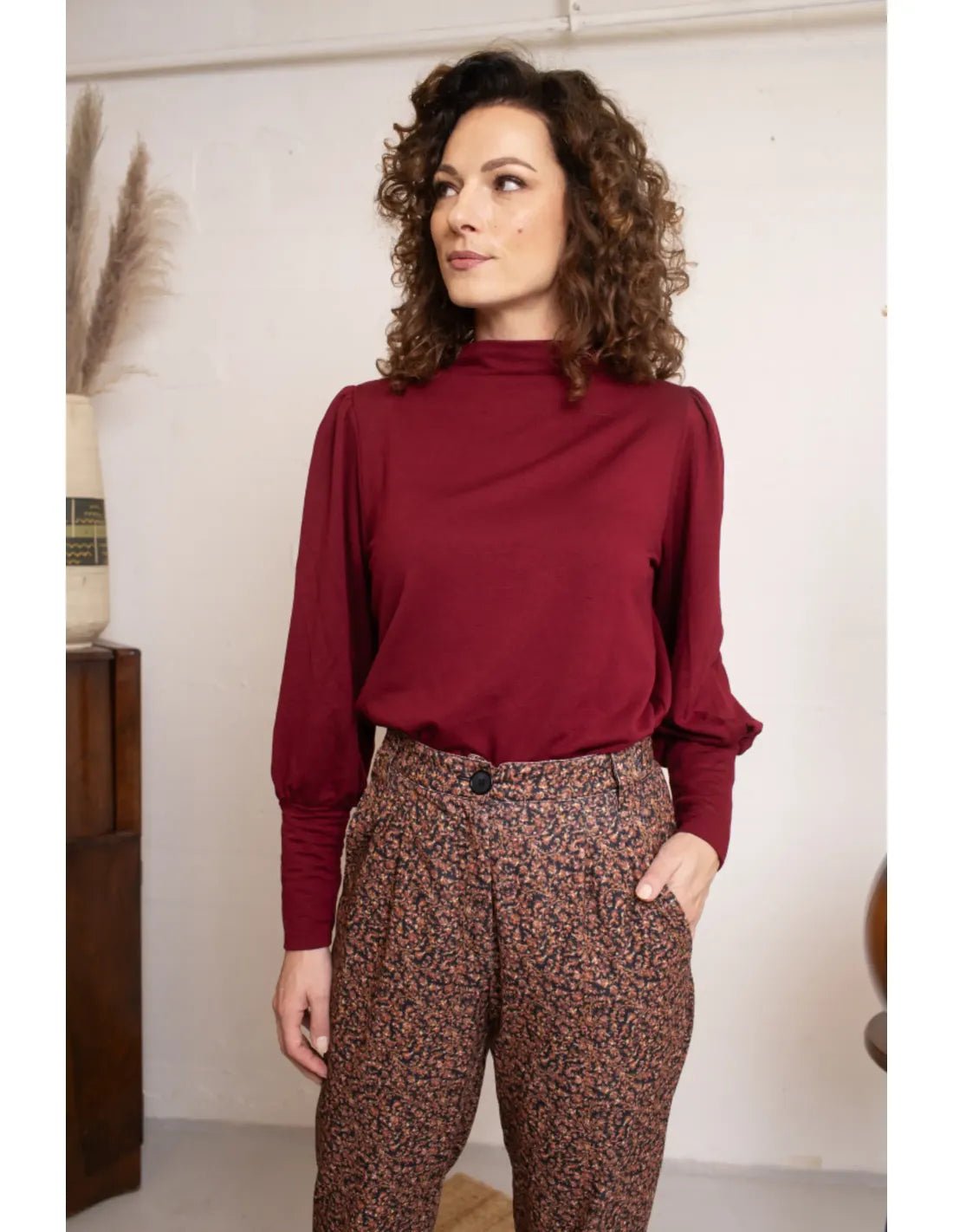 Maya Top Soft Fleece Burgundy | Very Cherry | Damenshirt