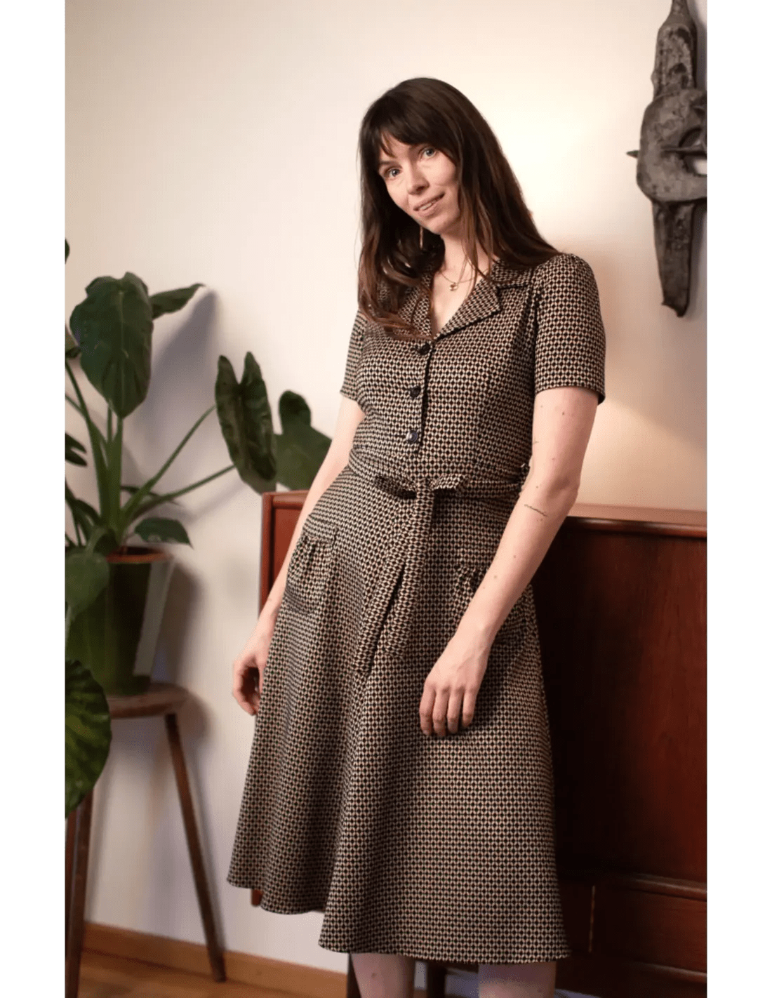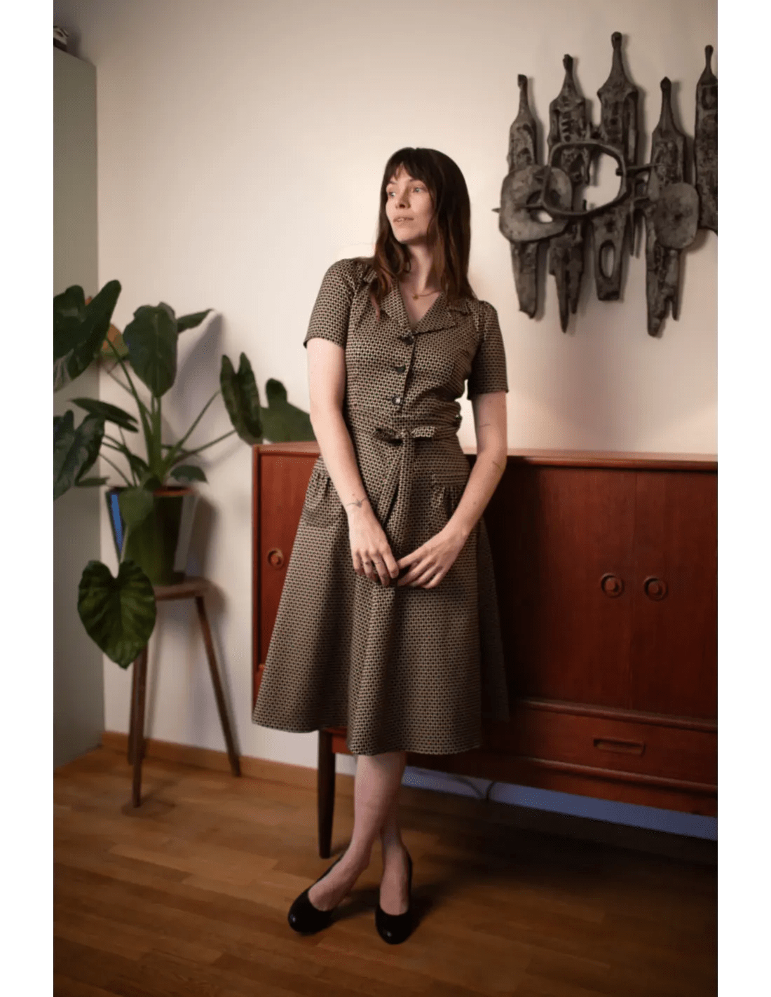 Das Midi Kleid Safiya von Very Cherry ist ein eleganter Klassiker mit modernem Twist. Der feminine Reverskragen, die Knopfleiste und der passende Stoffgürtel betonen die Taille und sorgen für eine stilvolle, feminine Silhouette. Durch den leicht ausgestellten Rock entsteht eine schmeichelhafte A-Linie, die jeder Figur guttut.