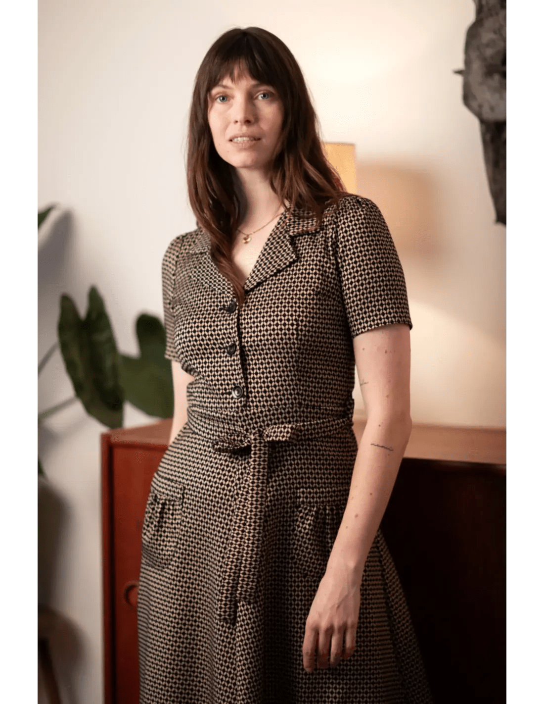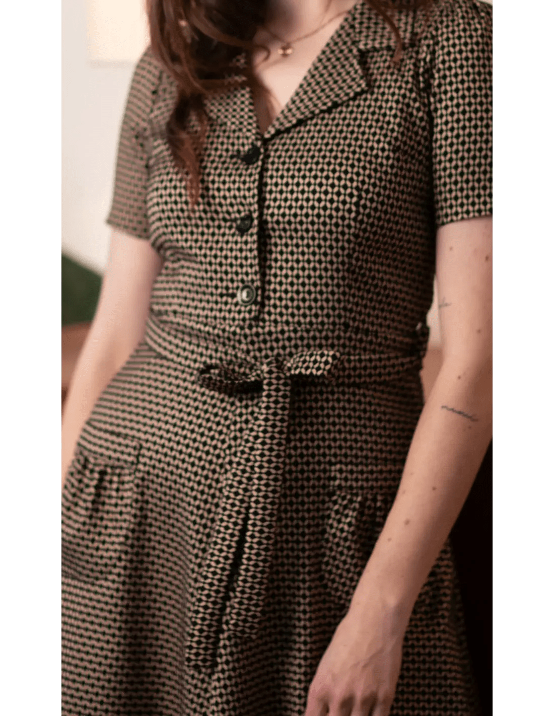 Midi Kleid Safiya in Schwarz-Braun | Very Cherry | Damenkleid