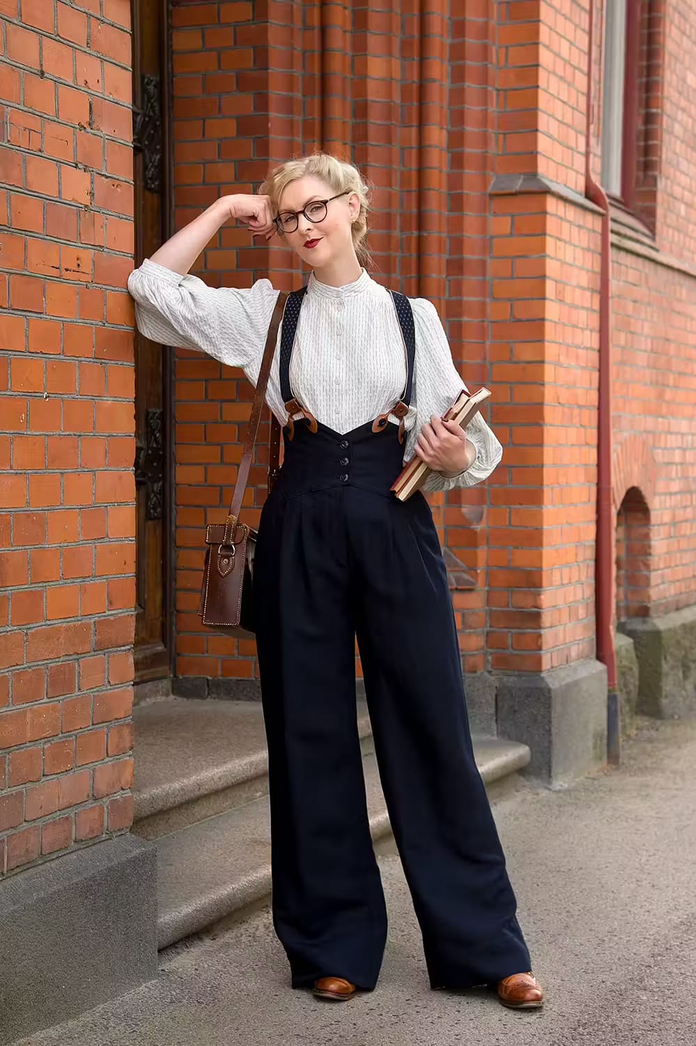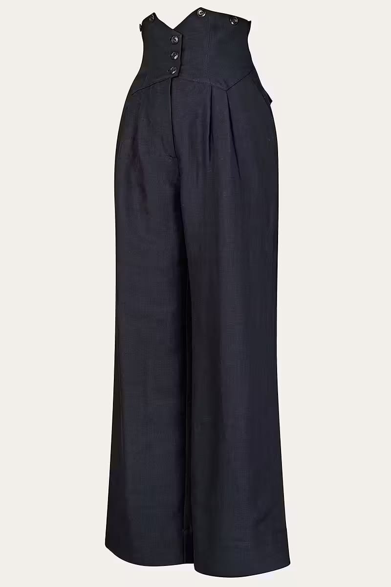 Mit ihrem extra hohen, figurbetonten Bund, Knöpfen für Hosenträger, geraden Beinen und praktischen Seitentaschen ist sie nicht nur ein optisches Highlight, sondern auch wunderbar alltagstauglich. Durch den großzügigen Saum kann die Hose problemlos um bis zu 8 cm gekürzt werden.