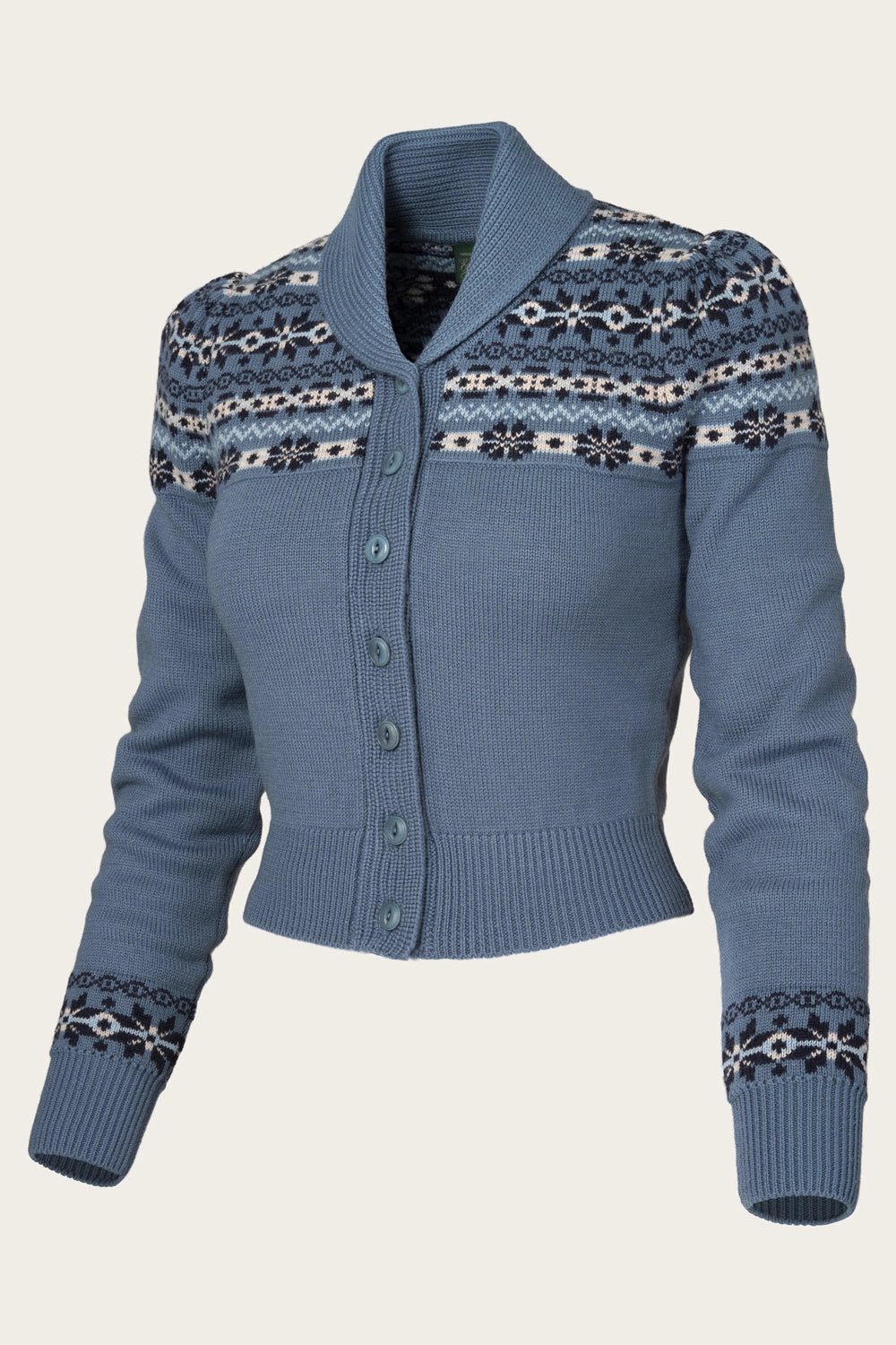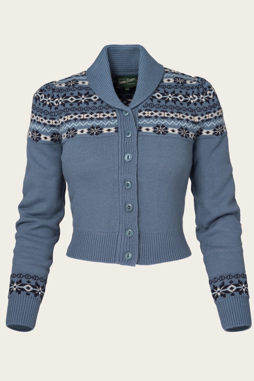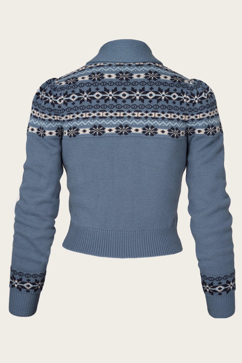 The Fair Isle Knit Jacket aus indigoblauer Wolle | Emmy Design | Damenstrickjacke