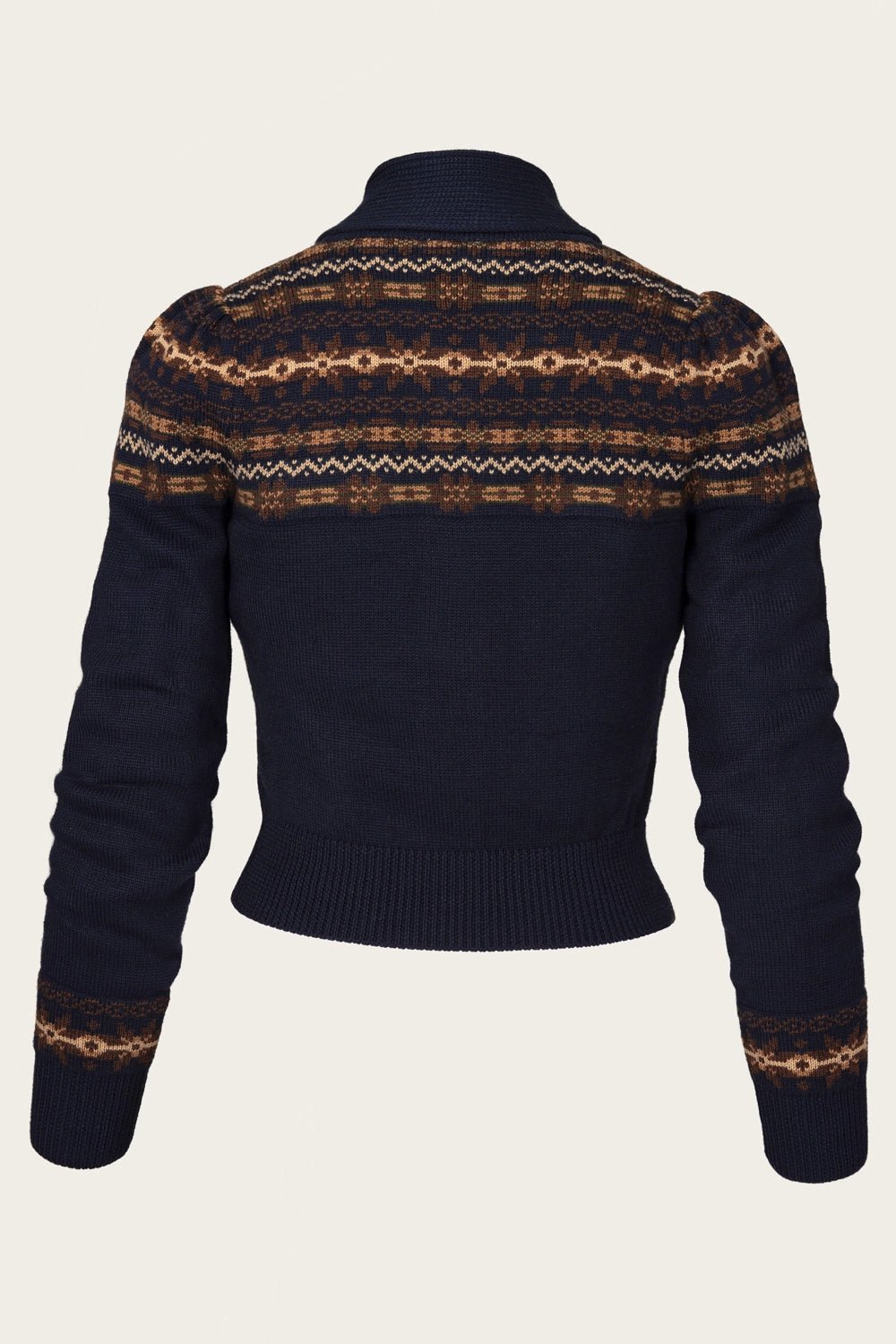 The Fair Isle Knit Jacket aus navyfarbener Wolle | Emmy Design | Damenstrickjacke