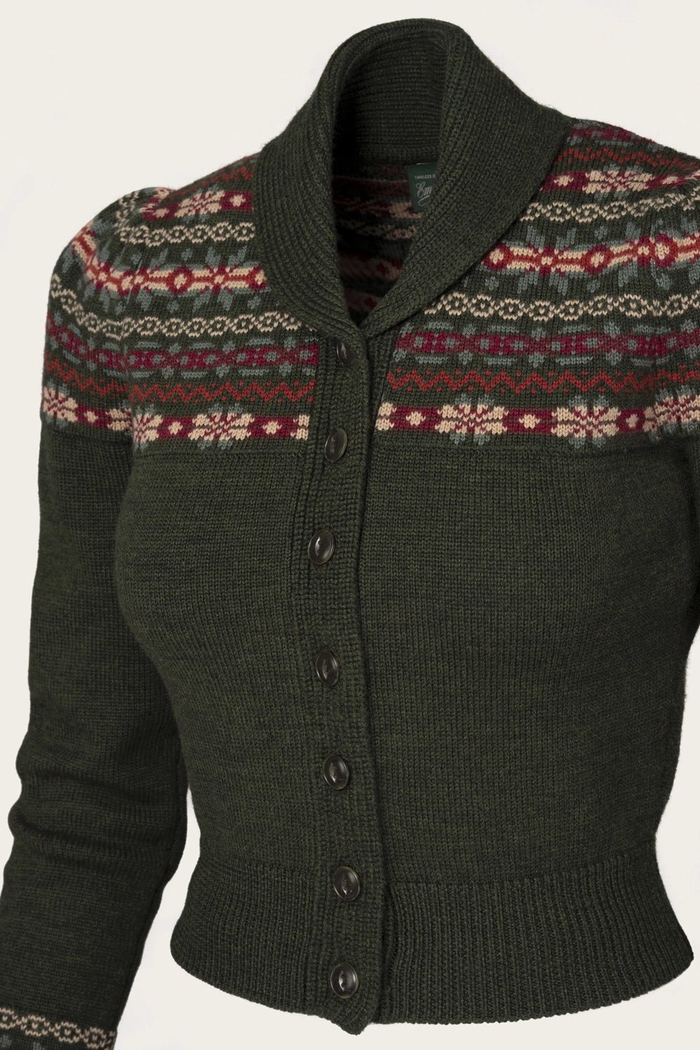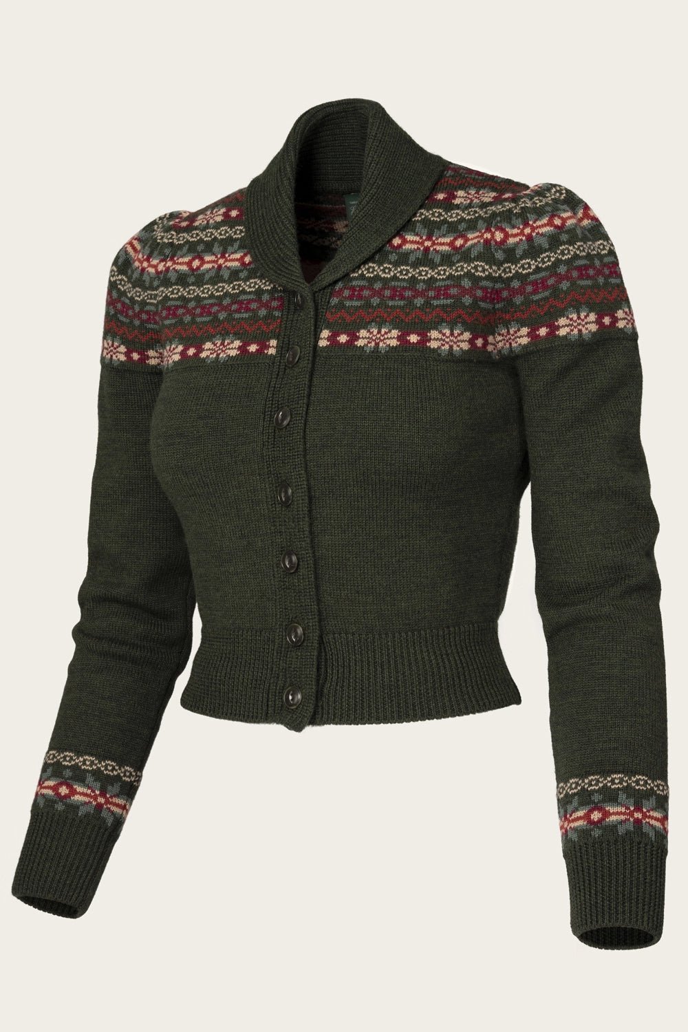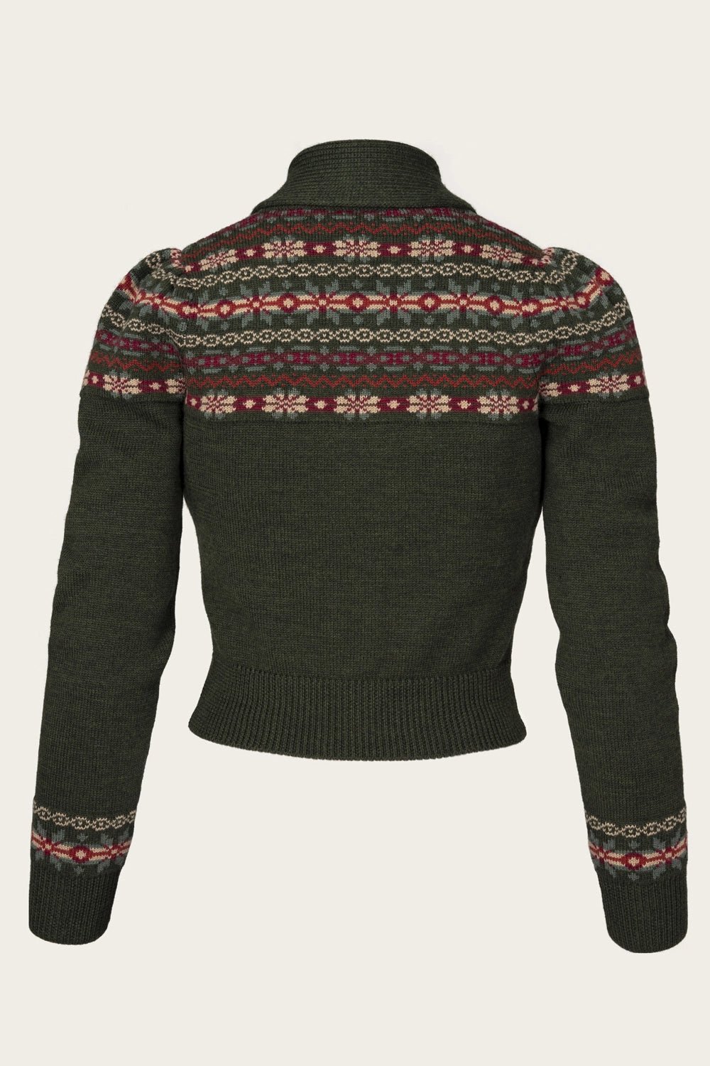 The Fair Isle Knit Jacket aus piniengrüner Wolle | Emmy Design | Damenstrickjacke