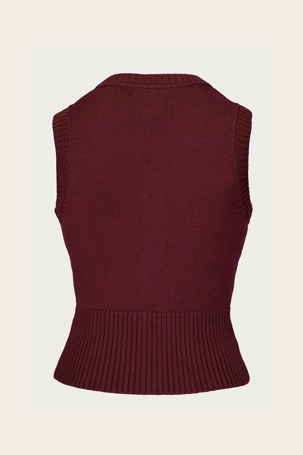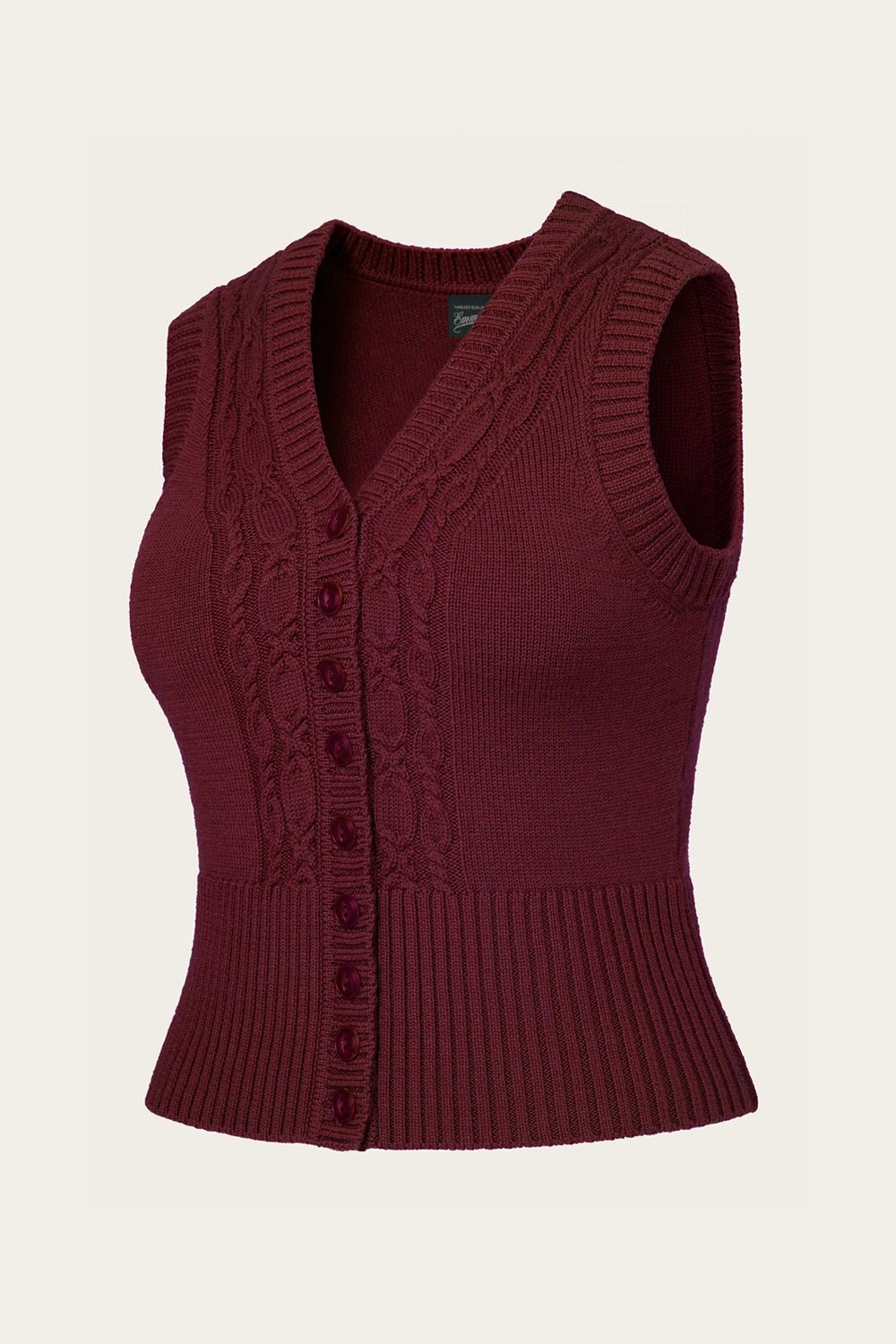 The Sassy Sweater Vest aus bordeauxfarbener Wolle | Emmy Design | Damenweste