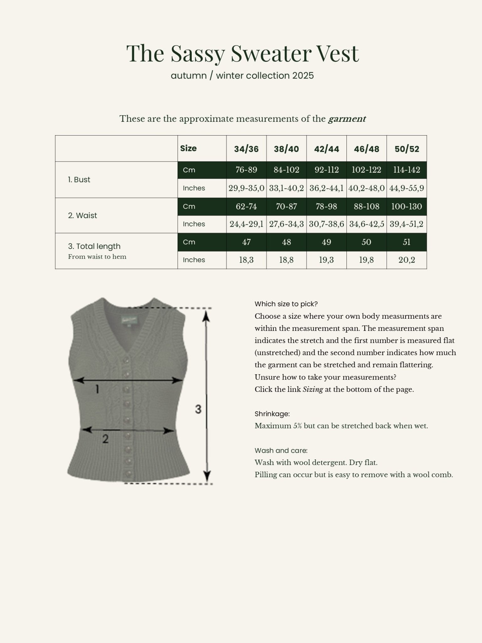 Die Weste The Sassy Sweater von Emmy Design in Bordeaux Melange Wolle ist eine neue, etwas kürzer geschnittene Strickweste, die auf der Hüfte endet. Sie schließt mit einer Knopfleiste, kann aber auch unkompliziert über den Kopf gezogen werden. Typisch für Emmy Design ist das markante Zopfstrickmuster, kombiniert mit einem breiten Rippbündchen an der Taille und einem V-Ausschnitt, der perfekt mit Blusen oder Hemden harmoniert. Ob schick eingesteckt oder locker über der Hose getragen, diese Weste ist warm, vielseitig und zeitlos elegant.