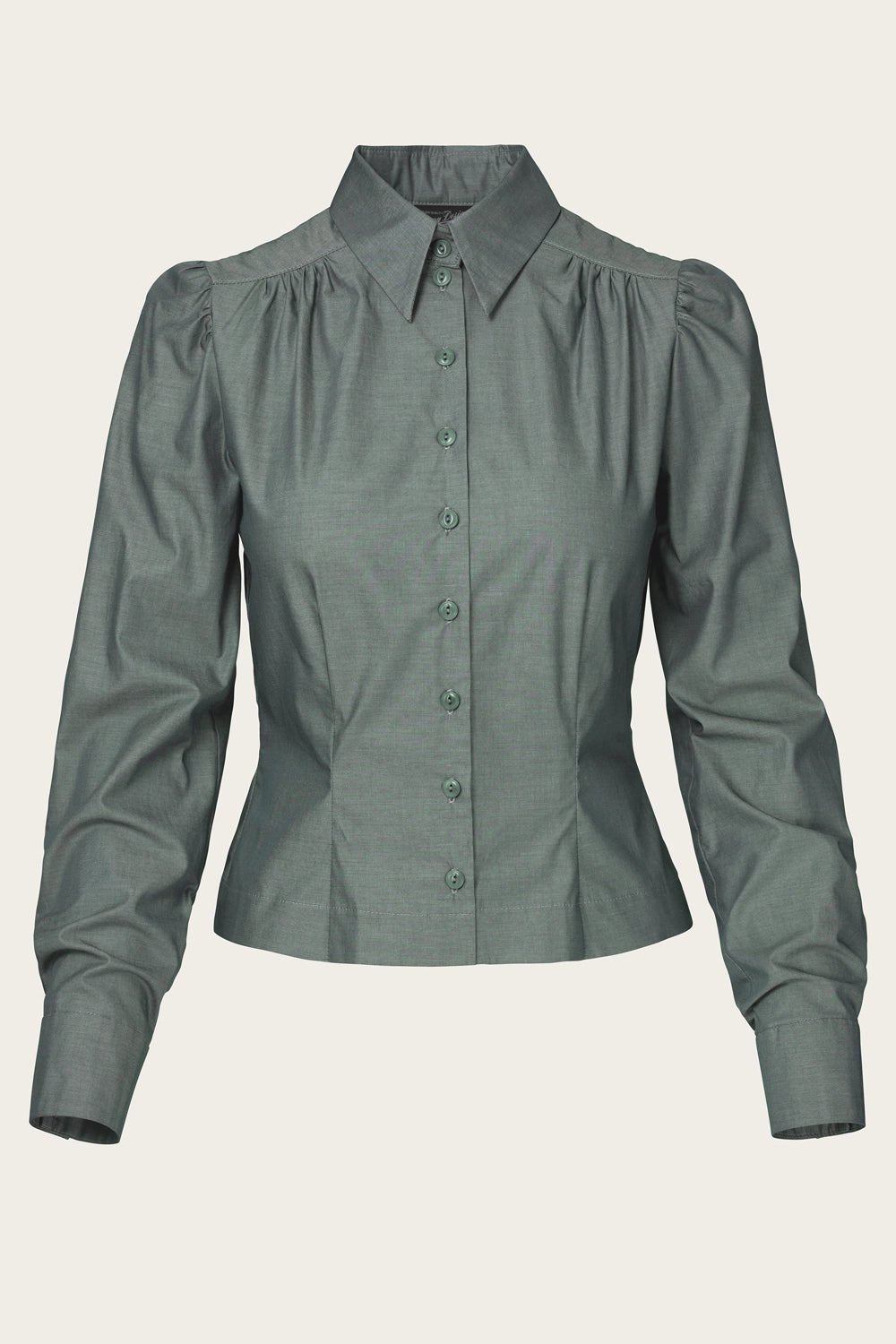 The Spectacular Spearpoint Shirt aus grünem Chambray | Emmy Design | Damenbluse