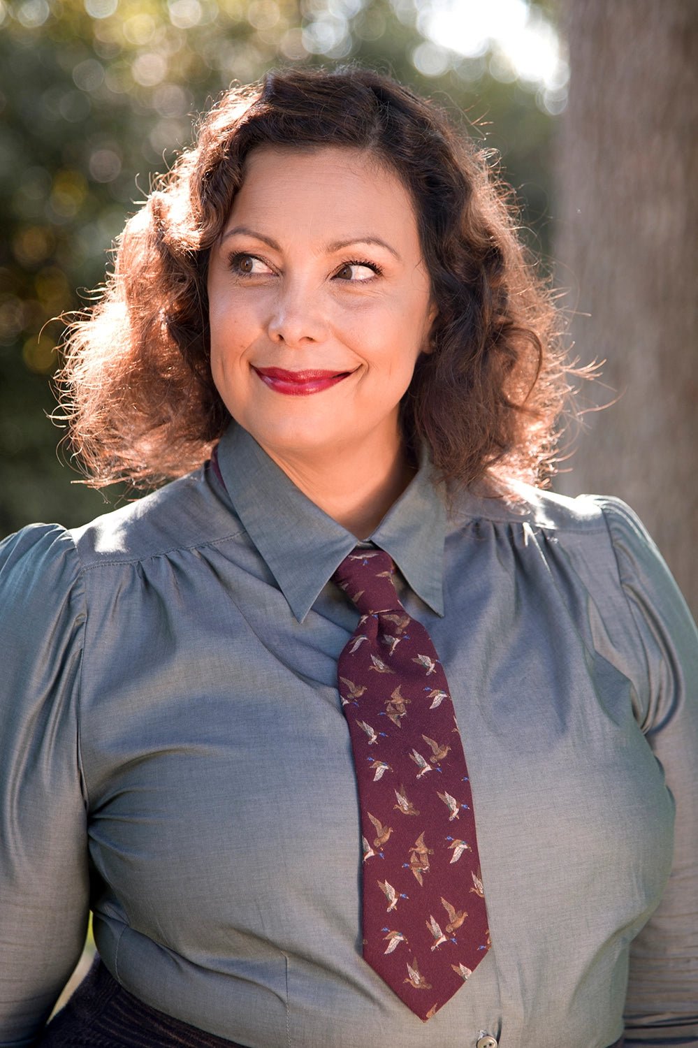 Das Spectacular Spearpoint Shirt aus grünem Chambray ist ein klassisches Damenshirt mit markantem Spearpoint-Kragen. Es kann mit Krawatte und Weste elegant kombiniert oder leger offen getragen werden. Die Passe mit Kräuselungen vorne und hinten sorgt für Bewegungsfreiheit und einen femininen Touch.