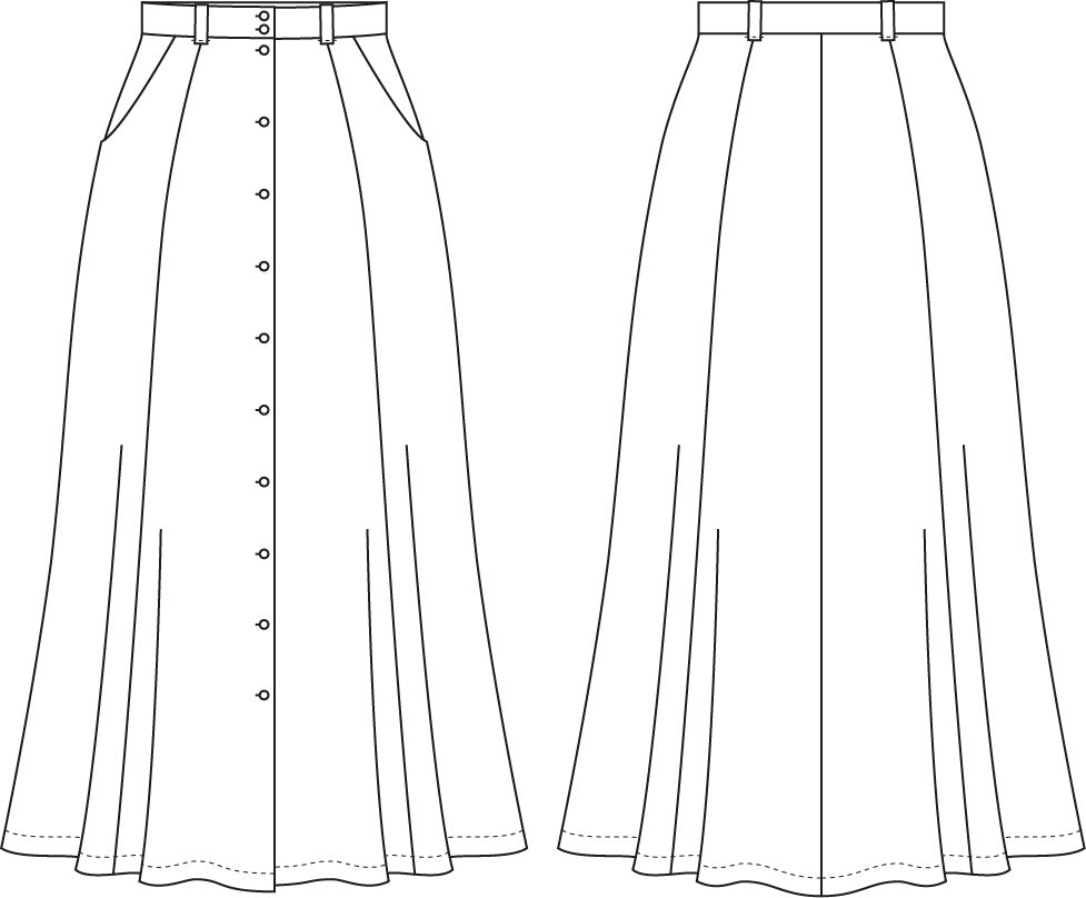 – Ausgestellter Midirock mit durchgehender Knopfleiste