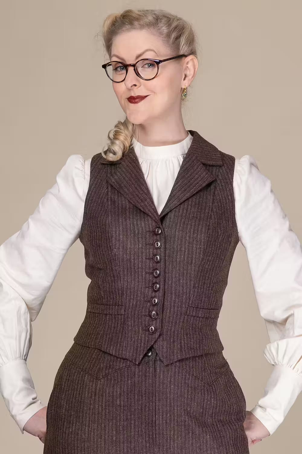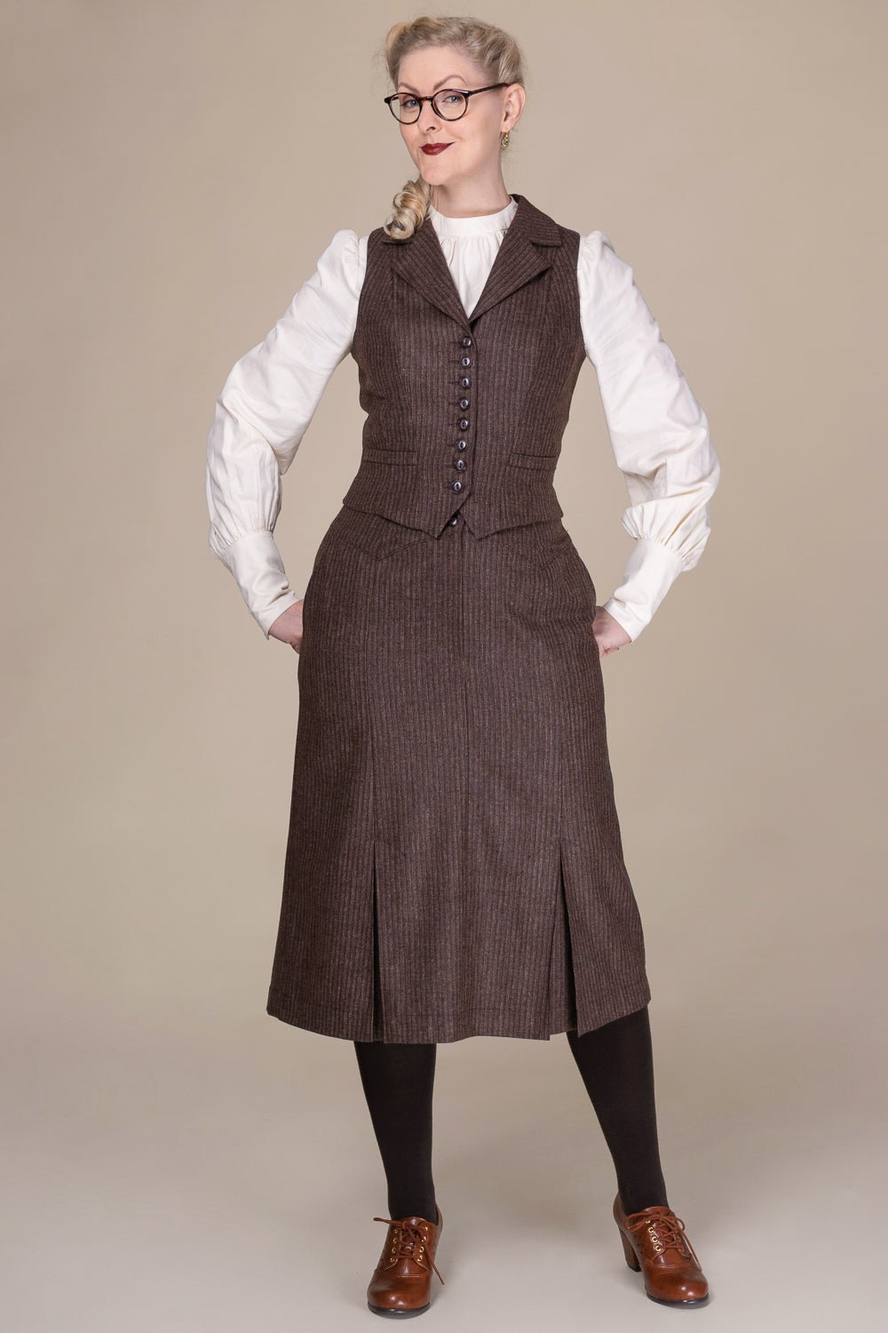 Watchmaker’s Waistcoat in Braun mit Nadelstreifen | Emmy Design | Damenweste