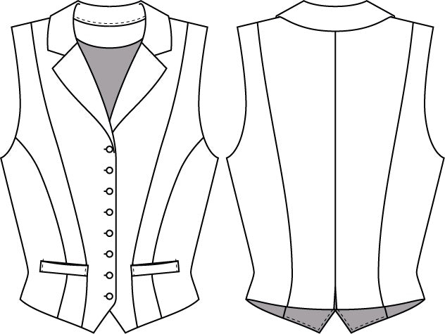 Vertikale Teilungsnähte vorne und hinten formen eine schmeichelnde Sanduhr-Silhouette. Die Zier-Taschen auf Taillenhöhe betonen zusätzlich die Figur und runden den Look perfekt ab. Ob für Büro, Event oder Freizeit – diese Weste bringt Struktur und Stil in jedes Outfit.