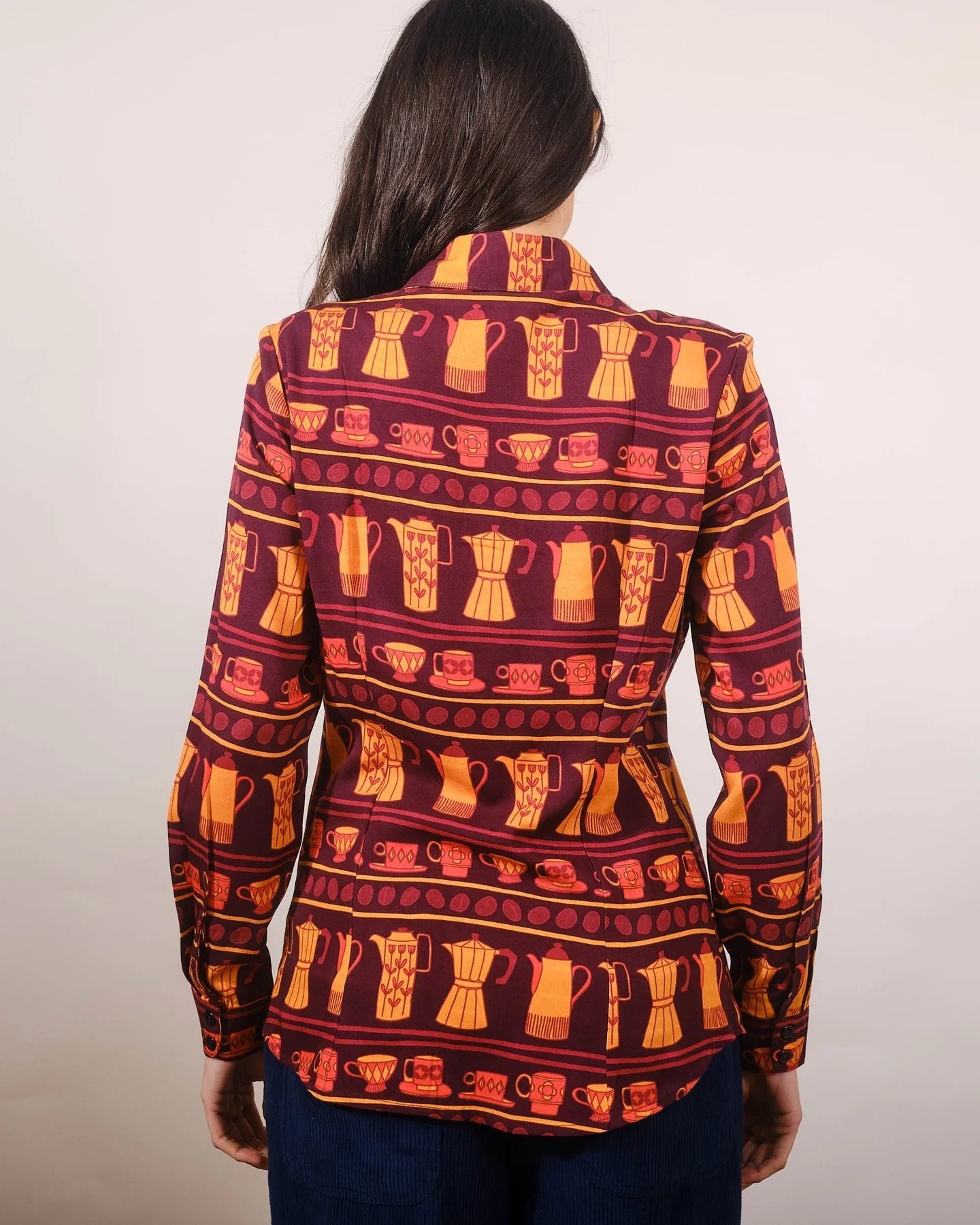 Die Pretty Vacant Winnie Blouse Coffee ist eine auffällige Bluse mit einzigartigem Kaffeemotiv-Print. Gefertigt aus hochwertiger Viskose, vereint sie Komfort mit Retro-Charme. Das Modell stammt von der britischen Marke Pretty Vacant und wird in einem familiengeführten Betrieb in Indien produziert. Durch ihr besonderes Muster wird sie zu einem echten Hingucker, ob im Alltag oder bei besonderen Anlässen.